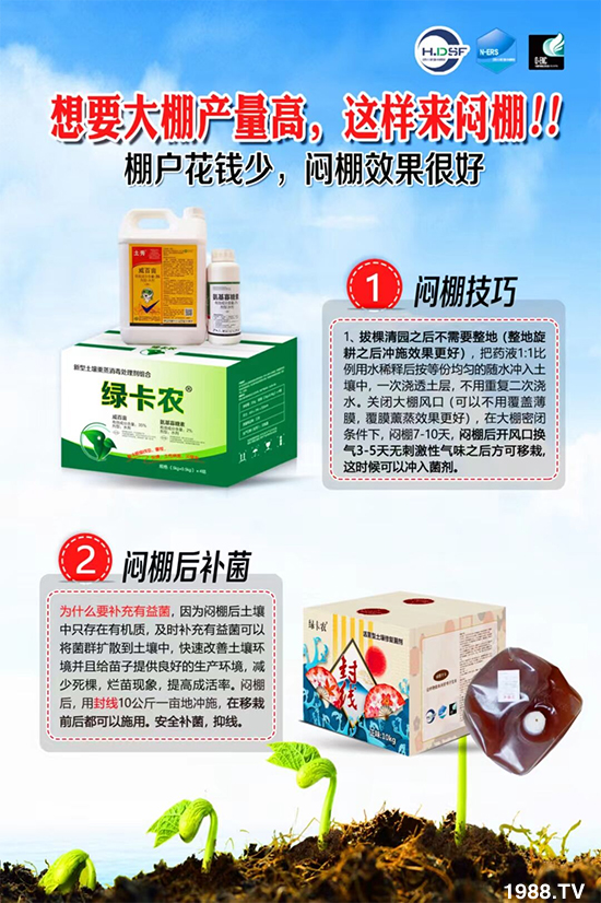 大棚的土壤已經(jīng)壞了!用再多的肥料也高產(chǎn)不了!是時(shí)候改土殺線蟲,老棚變新棚了!燜棚是一種簡單有效的農(nóng)業(yè)防止措施,能夠從土壤本質(zhì)入手,從根本上解決問題,從而達(dá)到理想的防治效果。