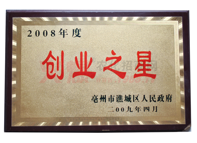 公司董事長(zhǎng)牛田野女士被授予2010年亳州市“十大創(chuàng)業(yè)之星”、2011年被市政府授予“十大杰出青年”,是亳州市第二、三屆人大代表。
