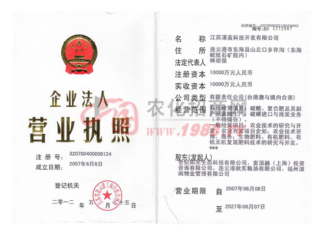 公司先后榮獲“國(guó)家行業(yè)一百?gòu)?qiáng)”、“全國(guó)農(nóng)資企業(yè)”等光榮稱號(hào),被江蘇省政府授予“文明單位”、“重合同守信用企業(yè)”、“環(huán)保先進(jìn)企業(yè)”、“A級(jí)納稅信用等級(jí)”等榮譽(yù)稱號(hào)。公司視產(chǎn)品質(zhì)量為企業(yè)生命,五大產(chǎn)品于2011年通過ISO9001:2008質(zhì)量體系認(rèn)證。